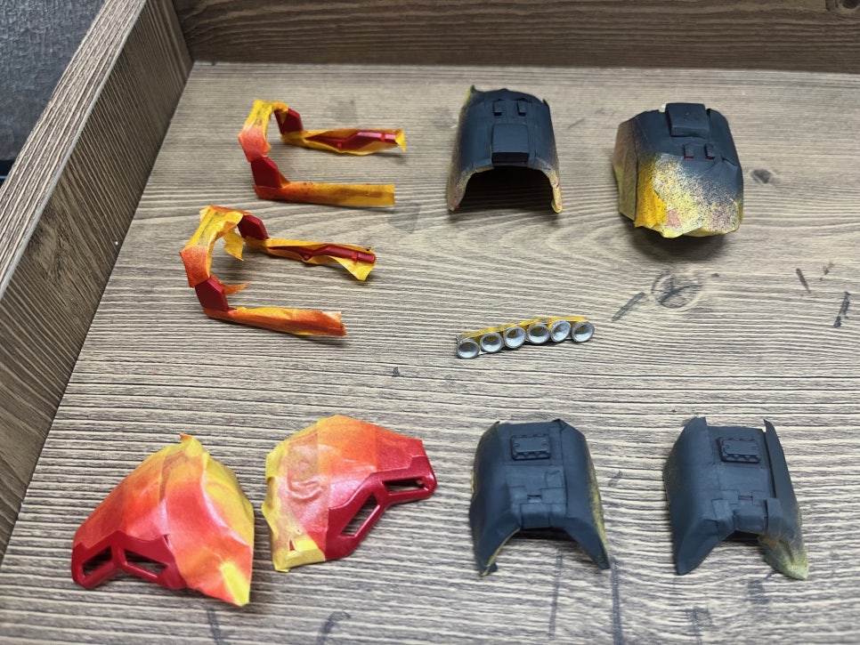 안녕하세요, MoonLight입니다.오랜만에 건프라 포스팅이네요. 천천히 하지만 멈추지는 않고 꾸준히 작업하고 있습니다.ㅎㅎBackpack과 Propellant Tank 작업한 내용 공유드리겠습니다.색분할을 하려고 이리저리 마스킹을 진행하고 Gray로 칠해주었습니다.뭔가 밋밋해서 조금 과감하게 해보기로 했습니다.저번에 똥색이 사자비 검은색 부분에 은근 어울리는 것 같아서 똥색으로 조금 더 힘을 줘 봤습니다. 뭔가 어색한 것 같기도 하고 괜찮은 것 같기도 하고....이미 칠해버린 색... 잘 어울리기만을 바랄뿐입니다.ㅎㅎ판넬 부품들은 일단은 기본 색을 그대로 유지하고 살짝만 칠했습니다. 사진을 찍지는 못했네요.다음은 Propellant Tank인데요, 잘 안 보이는 부분이지만,..