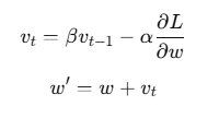 · 𝑣𝑡 : 현재 속도(velocity), 즉 가중치 업데이트에 영향을 주는 값