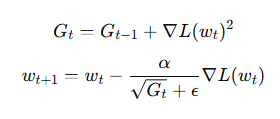 하지만, 𝐺𝑡가 커지면서 학습률이 너무 작아지는 문제(Vanishing Learning Rate)가 발생할 수 있다는 단점이 있습니다.
