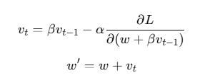(2) 네스테로프 가속 경사 (Nesterov Accelerated Gradient, NAG)