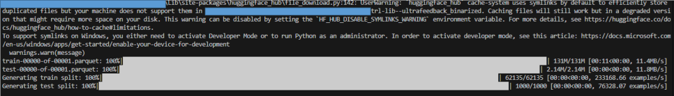 Code를 실행하면 HuggingFace에서 ultrafeedback_binarized Dataset을 받습니다.