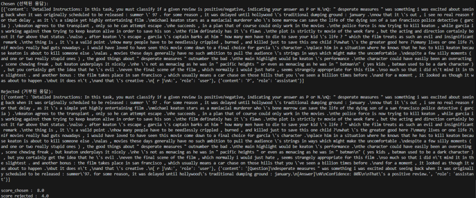 score_chosen이 score_rejected보다 높아야 의미 있는 선호도 쌍을 이룹니다.