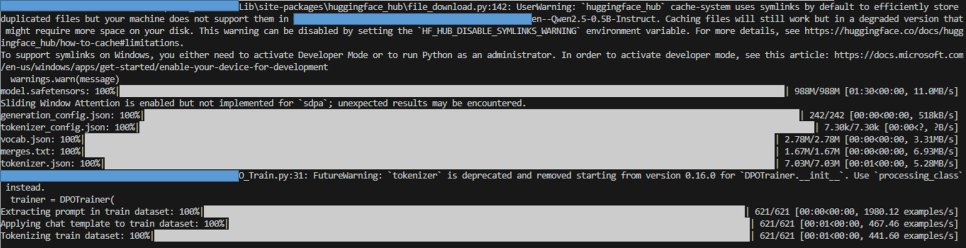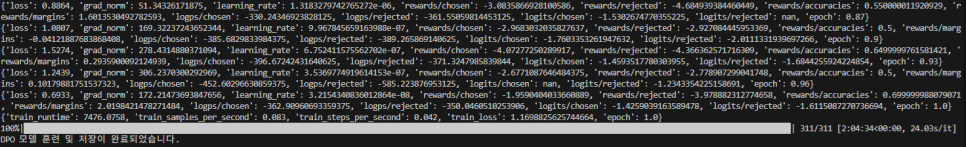 print("DPO 모델 훈련 및 저장이 완료되었습니다.")