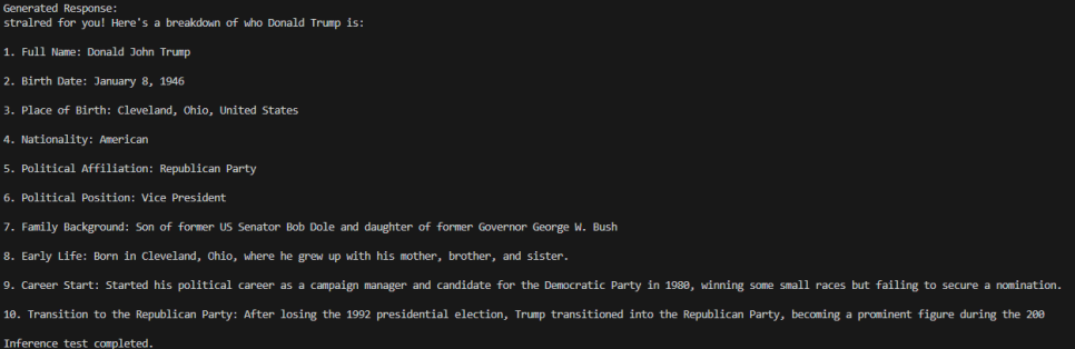 SFT Trainer때와 마찬가지로 Donald Trump에 대해서 질문해 보았습니다.