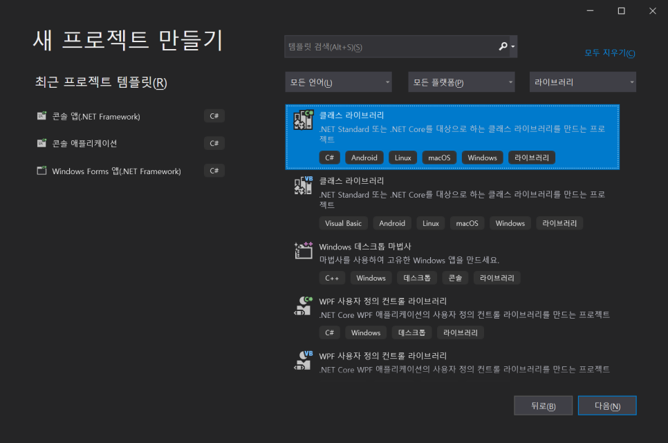 위 그림과 같이 .Net Standard Class Library를 만드는 Project를 선택합니다.
