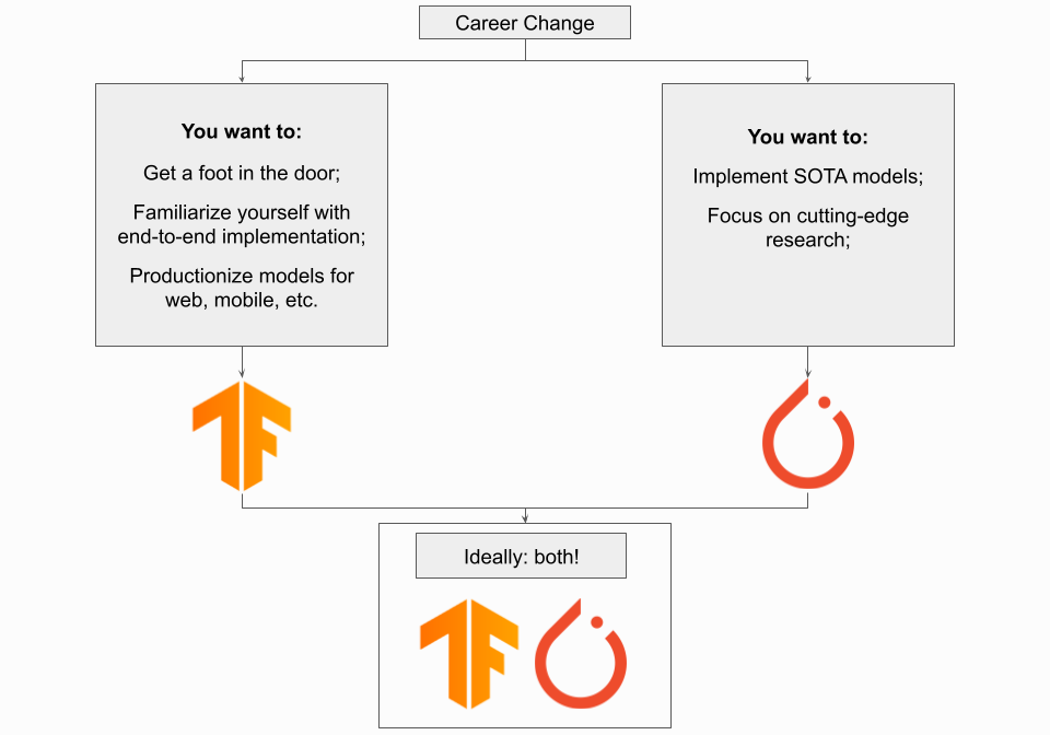 경력을 바꾸고 싶다면 PyTorch나 TensorFlow가 좋은 선택입니다.