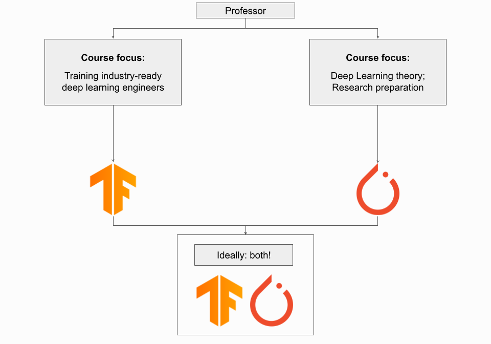 교수라면 Deep Learning 과정에 사용할 Framework는 교육 과정의 목표에 따라 달라집니다.