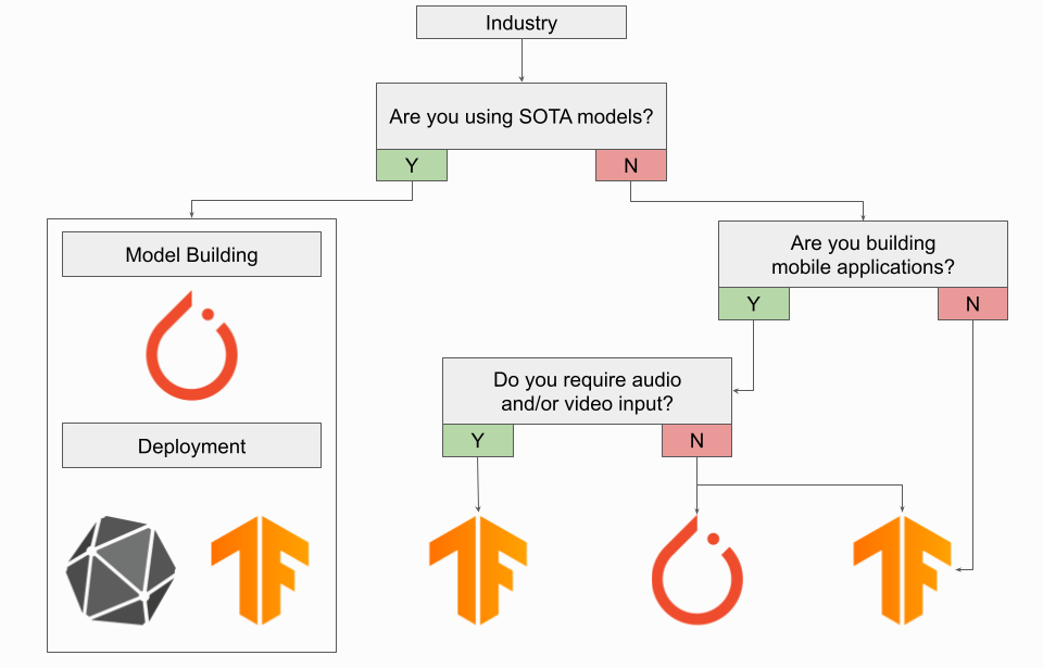 산업 환경에서 Deep Learning Engineering을 수행하는 경우 TensorFlow를 사용하고 있을 가능성이 높으며 계속 사용해야 합니다. TensorFlow의 강력한 배포 Framework와 종단 간 TensorFlow Extended Platform은 Model을 생산해야 하는 사람들에게 매우 중요합니다. Model Monitoring 및 아티팩트 추적과 함께 gRPC Server에 쉽게 배포하는 것은 업계에서 사용하기 위한 중요한 도구입니다.