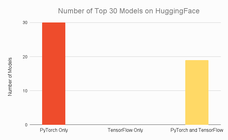 상위 30개 Model 중 2/3도 TensorFlow에서 사용할 수 없지만 모두 PyTorch에서 사용할 수 있습니다.