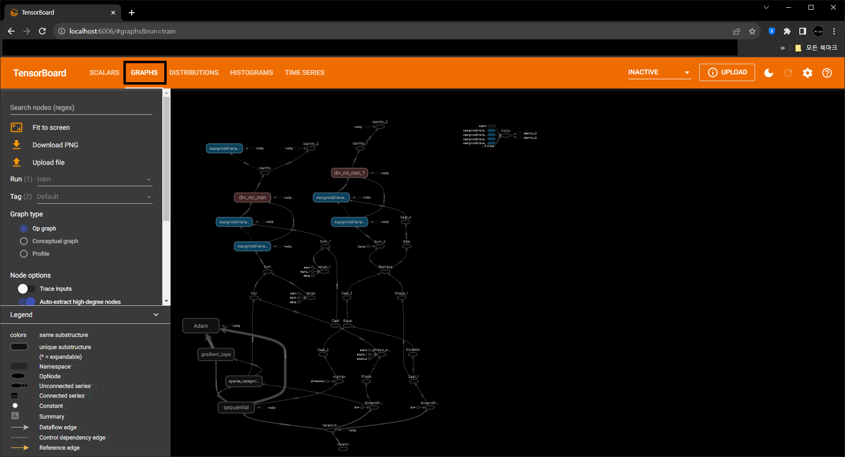 - ‘GRAPHS’ Tab에는 Model의 구조를 Graph 형태로 보여줍니다.