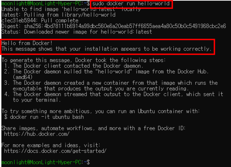 sudo docker run hello-world