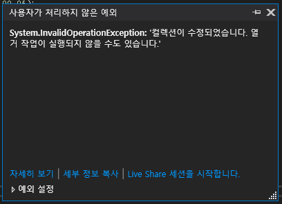 안녕하세요, MoonLight입니다. C#에서 Multi Thread or Task 작업 중에 'System.InvalidOperationException: 컬렉션이 수정되었습니다. 열거 작업이 실행되지 않을 수도 있습니다.'라는 Exception을 보신적이 있을 것입니다. Multi Thread 혹은 Multi Task을 사용하다 보면 여러 Thread or Task에서 공통으로 사용해야 하는 값들이 있을 것입니다. 흔히 이것을 공유 자원이라고 하고 공유 자원을 여러 Thread에서 잘 사용할 수 있도록 조절하는 것을 동기화라고 하죠. 결론적으로, 동기화 문제를 해결하는 방법은 하나의 Thread에서 공유 자원을 사용하고 있으면 다른 Thread들에서는 사용하지 못하게 막는 것입니다. ..